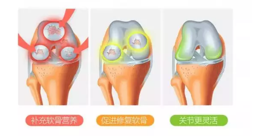 硫酸软骨素可以加水分放入到蛋白多糖分子内,能刺激关节滑液的分泌,为关节“润滑”。补充硫酸软骨素可增强关节的减震能力,缓和行走或跳动时外力对关节的冲击和摩擦,被医学家誉为“关节软黄金”